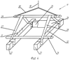 Для обеспечения фиксации угла поворота рамы 2 относительно рамы 1 служит закрепленный на одной или обеих осях 3 и 4 механизм, состоящий из двух дисков, один из которых 18 установлен с торца оси 4 неподвижно, а другой 19 жестко соединен с этой осью с возможностью поворота совместно с ней. В обоих дисках образованы сквозные соосные отверстия. Соответствующие отверстия обоих дисков после поворота рамы 2 на нужный угол стопорятся с помощью штырей 20.