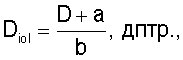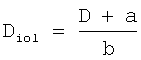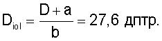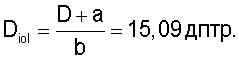 где Diol – оптическая сила равновыпуклой ИОЛ при внутрикапсульной фиксации для коррекции афакии с тампонадой витреальной полости силиконовым маслом, дптр., D – оптическая сила ИОЛ при естественном стекловидном теле, дптр., а – изменение оптической силы равновыпуклой ИОЛ при внутрикапсульной фиксации для коррекции афакии с тампонадой витреальной полости силиконовым маслом, дптр., которое определяют по формуле: