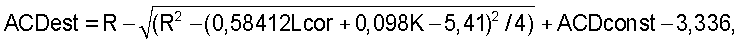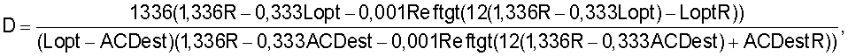 где Ns – коэффициент преломления силиконового масла, равный 1,4034; Lopt – расстояние от вершины роговицы до наружных слоев сетчатки, мм; ACDest – глубина передней камеры, мм; b – коэффициент, учитывающий модифицированный коэффициент преломления силиконового масла в витреальной полости и коэффициент преломления материала ИОЛ, который вычисляют по формуле