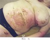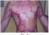 4. Больной А., 71 год, диагноз: ожог пламенем II-IIIa степени 10% п.т. Доставлен через 2,5 часа после травмы. На следующий день на раны наложены повязки на основе коллагена типа I с PDGF-BB. Биологическими повязками закрыто 9% п.т. На 3-и сутки наблюдалось формирование неоэпителия по всем поверхностям. На 7-е сутки в областях наложения повязок с коллагеном наблюдалась полноценная безрубцовая эпителизация.