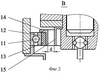 Предлагаемая дробилка (фиг.1) содержит корпус 1 с наружным конусом 2 и сферической опорой 3 для внутреннего конуса 4 с валом 5, на котором с помощью подшипника 6 размещен дебалансный вибратор 7, соединенный промежуточным валом 8 и клиноременной передачей 9 с двигателем 10. В корпусе 1 (фиг.2) установлен подшипник качения 11, внутреннее кольцо 12 которого зафутеровано резиной 13, покрытой контактным кольцом 14. На дебалансном вибраторе 7 закреплено ответное кольцо 15, концентричное валу 5, причем ограничительный зазор «d» между ответным кольцом и радиальным футерованным кольцом подшипника определяется из зависимости