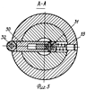 Работает расточная головка следующим образом. Вначале расточная головка должна быть установлена в исходное положение – когда ролик 32 касается конуса 34, а ролик 31 клиновой поверхности 28. Режущий элемент 16 настраивается винтом 18 на обрабатываемый диаметр D. Затем включается вращение и подача шпинделя, а следовательно, и расточной головки. Передняя направляющая 4 входит в отверстие 10 и режущий элемент 16 касается обрабатываемой детали, начинается расточка отверстия с диаметра D1 на D. Когда консоль пиноли 36 увеличивается, в отверстие 10 входит задняя направляющая 5. После выхода режущего элемента 16 из зоны резания и прохождения опорой 25 расстояния L она упирается в упор 26. Далее головка перемещается еще на расстояние (a), стопор 27 поднимается и ролик 31 оказывается на опорной поверхности 29. Плунжер 20 с конусом 21 фиксируется в поднятом положении (фиг.2). Толкатели 19 в это время касаются конуса 21, а пружина 17 поворачивает резцовую вставку 15 вокруг шарнира 14 и отводит режущие элементы от обработанной поверхности на диаметр D2