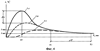на фиг.4 представлены графики изменения во времени температуры в характерных точках поперечного сечения балки (см. фиг.3);