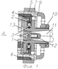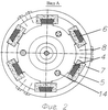 Торцовый абразивный инструмент состоит из корпуса 1, в котором выполнены радиальные пазы и отверстия. В отверстиях установлены сухари 2 с пружинами 3, а в пазах – клинья 4 и абразивные бруски 5 с продольными клиновидными пазами, заполненными твердым смазочным материалом 6 (ТСМ). Пазы в брусках обращены поочередно к оси вращения инструмента или к ободу 7, который закреплен на корпусе 1 винтами 8. Корпус 1 имеет хвостовик с наружной резьбовой поверхностью, на которую навинчен толкатель 9, контактирующий с абразивными брусками и зафиксированный гайкой 10. Инструмент устанавливается на шпиндель 11 плоскошлифовального станка и закрепляется винтом 12.