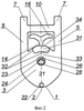 При поворотах основания 1 относительно ответной части 35 дополнительный выступ 22 на тыльной стороне 21 основания 1 выполняет функцию ограничителя и направляющей для свободного конца 56 дугообразного элемента 38 ответной части 35.
