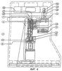 В соответствии с настоящим изобретением в основном корпусе 1 установлены две направляющие 19 и 26. Направляющие 19 и 26 предназначены для определения траектории движения. На направляющих 19 и 26 установлены два блока линейного перемещения 18. Блоки линейного перемещения 18 обеспечивают очень малое трение при вертикальном перемещении. Блоки линейного перемещения 18 соединены с ползунком 6 с помощью корпуса передачи винт-гайка 3, смонтированного на гайке блока шарикового ходового винта 17. Блок шарикового ходового винта 17 имеет очень высокую точность изготовления и установки на основание, закален и перемещается в точном соответствии с командами. Этот блок шарикового ходового винта 17 установлен по центру между двумя направляющими 19 и 26. Ползунок 6 установлен сверху на корпусе передачи шариковой пары винт-гайка 3 и на верхней поверхности двух блоков линейного перемещения 18. Ползунок 6 также соединен с флажком датчика 10, устанавливающим предельное положение вертикального перемещения ползунка 6. Ползунок 6 перемещается вверх и вниз в соответствии с вращением шарикового ходового винта 17. Для крепления шарикового ходового винта 17 установлен главный блок шарикоподшипников 2. Два шарикоподшипника 16 установлены в блоке шарикоподшипников 2, причем для ограничения осевого перемещения используется стопорная гайка 8. Блок главного шарикоподшипника 2 имеет две стопорные гайки 8 и 9 и распорную втулку 11. Распорная втулка 11 расположена между шарикоподшипником 16 и стопорными гайками 8 и 9. Одна из стопорных гаек 8 предназначена для предотвращения осевого перемещения шарикового ходового винта 17, а другая стопорная гайка 9 используется для фиксации положения шарикоподшипника 16 в корпусе подшипника 2. Кронштейн электродвигателя 12 установлен на главном блоке шарикоподшипников 2. Электродвигатель 14 крепится на этом кронштейне электродвигателя 12. Для соединения двух концов вала, т.е. вала шарикового ходового винта 23 и вала электродвигателя 24, используется привод с гибким валом 15.
