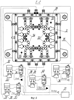 На взаимнообращенных друг к другу поверхностях полупресс-форм 9 и 3 выполнены формообразующие полости 53, повторяющие конфигурацию формуемых изделий, и в них выполнены воздушные каналы («венты») 54 и смонтированы датчики температуры 55 (фиг.6 и 7).
