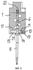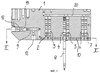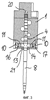 Изображения в разрезе на фиг.1 и 2 показывают обозначенную общей позицией 1 верхнюю часть пневматической формовочной машины для изготовления полых изделий, в частности бутылок и других аналогичных снабженных сливным сверлением емкостей из термопластической пластмассы. В частности, в приведенном здесь в виде примера устройстве речь идет о верхней части 1 пневматической формовочной машины для изготовления двухкамерных емкостей. Для этого в верхней части 1 машины предусмотрены проходящие вертикально посадочные отверстия 2-7, которые расположены попарно одно возле другого и служат для помещения выдувных оправок. На фиг.1 и 2 обозначена соответственно лишь одна единственная выдувная оправка 8, удерживаемая в посадочном отверстии, обозначенном позицией 4.