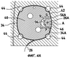 На своем нижнем конце по направлению подачи полосы в камеру ввода канавка 56 имеет скос 56А, который направляет полосу в кольцевой зазор 42, предотвращая блокировку полосы в канавке, когда ее передний конец входит в контакт со скосом 56А.