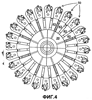 Фиг.2 показывает оправку 78, собранную на оправочном круге 20. Согласно предпочтительному осуществлению: оправочный круг 20 представляет собой стальной диск с центральной осью 45. Обращаясь к Фиг.4: на оправочном круге 20 установлена совокупность предпочтительно из двадцати четырех узлов 50 оправки. Узлы 50 оправки единообразно расположены по окружности оправочного круга 20, через интервал. Согласно Фиг.3: каждый узел 50 оправки имеет опорную штангу 43, которая смонтирована в положении на внешней поверхности оправочного круга 20.