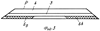 На фиг.1 показан в вертикальном разрезе протектор 1 шины пассажирского автомобиля и основание 2 шины под протектором. Слой 3 промежуточной основы образован двумя полосами 3а и 3b, расположенными в боковых зонах протектора параллельно его поверхности. Слой 4 мягкой резины внешней части протектора окружает упомянутые полосы. Ширина каждой полосы немного превышает одну треть ширины протектора, так что ширина центральной зоны протектора между полосами немного меньше одной трети ширины протектора.