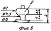 На фиг.6 отдельно показан шип 5 и даны его размеры по высоте и диаметру. Шип имеет известную конструкцию, а его размеры соответствуют толщине слоев протектора, так что нижний фланец расположен полностью под слоем промежуточной основы, а узкая часть, по существу, окружена слоем промежуточной основы.