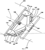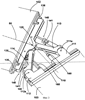 Консольная направляющая 110 в форме исполнения согласно фиг. с 1 по 6 выполнена в виде горизонтальной направляющей салазок 111 и 112. Таким образом, как уже было сказано выше, существует необходимость, чтобы поворотные подшипники 135, 136 допускали вертикальное движение.
