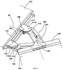 Кроме того, предусмотрено демпфирующее приспособление 140 с двумя демпферами 141, причем один из этих демпферов соединен с одной стороны с шарнирным кронштейном 113, 114, а с другой – с консолью 130. Эти демпферы 141 выполнены в виде гидравлических цилиндров двойного действия и и обеспечивают в конечном итоге стабильность или жесткость шарнира.
