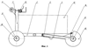 Устройство поясняется чертежами, где на фиг.1 изображен общий вид устройства для транспортировки грузов по лестничным пролетам; на фиг.2 изображен вид сверху на фиг.1; на фиг.3 изображен вид справа на фиг.1; на фиг.4 устройство изображено в сложенном состоянии; на фиг.5 изображен общий вид ходовой части; на фиг.6- разрез фиг.5.