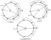 На фиг.1 отображено расположение соответственно ИСЗ на орбитах в трех плоскостях. Метод оптимизации орбитального построения глобальных спутниковых систем (математический аппарат) приведен в журнале “Полет” №12, 2001, с.20-26.