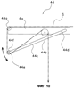 Кроме того, показанный на фиг.10 механизм контроля натяжения 44 контролирует натяжение полосы S, разматываемой с рулона 42а и транспортируемой к прикрепляющему механизму 33. Как показано на фиг.10, механизм контроля натяжения 44 содержит два ролика 44а, 44b, установленные с возможностью вращения на неподвижный элемент 6а, прикрепленный к раме 6; рычаг 44с, установленный с возможностью вращения на неподвижном элементе 6а своей задней концевой частью 44d и продолжающийся вперед и вниз; и ролик 44f, аксиально установленный на передний конец 44е рычага 44с. При последовательном обертывании полосы S вокруг трех роликов 44а, 44f, 44b рычаг 44с и ролик 44f тянут полосу S с заданным усилием, а натяжение полосы S поддерживается в заданном диапазоне. Таким образом обеспечивается контроль провисания и изгибания полосы S.