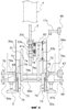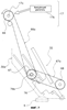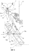 Опорные элементы 74 прикреплены к ползунам посредством соединительных стержней 79а, 79b. Опорные элементы 74 представляют собой пару правых и левых стоек, продолжающихся по диагонали вверх и вниз. Неподвижная часть 31 с каждого удерживающего механизма 31 прикреплена к верхнему концу 74а соответствующего опорного элемента 74. Соответственно скользящие элементы 73, опорные элементы 74 и удерживающие механизмы 31 периодически вместе и одинаковым образом (вверх и вниз, вперед и назад) перемещаются по диагонали.