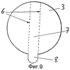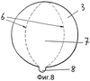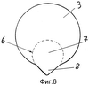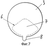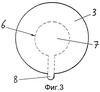 На фиг.3-10 изображены виды сверху банок с горючим, запорные крышки 3 которых имеют единственный удаляемый элемент 7, причем при его удалении вдоль места 6 заданного разрыва образуются разные формы отверстий, а именно у изображенных на фиг.3-7 банок формы отверстий только с одной осью симметрии (на фиг.3 окружность с полосовидным фасонным элементом, на фиг.4 и 5 грушевидные отверстия, на фиг.6 отрезок окружности, на фиг.7 круговой сегмент), а у остальных банок – формы отверстий с двумя перпендикулярными друг другу осями симметрии (на фиг.8 – форма лимона, на фиг.9 – форма полосы, на фиг.10 – ромб с двумя противоположными друг другу фасонными элементами), которые к тому же пересекаются на вертикальной оси через центр корпуса 1 банки и образуют геометрическую форму горелки, которая способствует стабильному пламени и равномерному сгоранию горючего при эксплуатации.