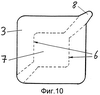 В противоположность всем остальным изображенным банкам с горючим изображенная на фиг.10 банка содержит квадратный лоток в качестве корпуса 1 банки. Благодаря этому такие банки при транспортировке и хранении требуют особенно мало места. Как показывают обозначенные штриховыми линиями места 6 заданного разрыва, здесь запорная крышка, как и у банки на фиг.2, выполнена таким образом, что при отделении участка 7 образуется центральное отверстие, которое имеет, в основном, такую же форму, что и поверхность горючего наполнителя в корпусе банки, т.е. в данном случае, по существу, квадратную форму, и к тому же расположено концентрично этой поверхности. Кроме того, после удаления участка 7 от двух противоположных углов квадратного центрального отверстия к соответствующим углам запорной крышки 3 отходят два полосовидных и расширяющихся наружу фасонных элемента. Это выполнение способствует при эксплуатации разделению всего отверстия на зону горелки (квадратное центральное отверстие) и воздухоподводящие отверстия (полосовидные фасонные элементы), что, впрочем, относится также к формам отверстий банок на фиг.1-5, 11, 12.