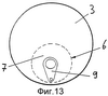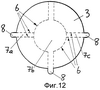 Как показывают обозначенные штриховыми линиями места 6 заданного разрыва на фиг.12, запорная крышка 3 у этой формы выполнения банки с горючим, согласно изобретению, выполнена таким образом, что после удаления элемента 7b образуется отверстие, которое по форме и величине идентично уже описанному в связи с фиг.1b. Дополнительно здесь могут быть удалены, однако, и элементы 7а, 7с, в результате чего достигается форма отверстия большей симметрии, что приводит к повышению мощности горелки и к более равномерному сгоранию горючего наполнителя при эксплуатации.
