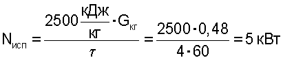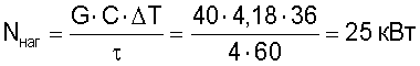 На нагрев объема воды G=40 л от Тнач 19°С до Тконечная 55°С требуется мощность: