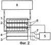 Однако применение этого способа для регенерации фиксажно-отбеливающего раствора выявил ряд существенных недостатков. Так, в процессе электролиза фиксажно-отбеливающего раствора пику катодного выделения серебра (Фиг.1) предшествует процесс восстановления Fe3+ (в форме феррицианида калия, хлорного железа или железной соли этилендиаминтетроуксусной кислоты). На начальном этапе электролиза большая часть поверхности электрода работает на восстановление Fe3+ и серебро не извлекается, а наблюдается лишь постепенное снижение концентрации соли Fe3+ (см. Фиг.1, катодные поляризационные кривые 1-го и 2-го часа электролиза раствора). И лишь после того, как концентрация Fe3+ в растворе станет значительно меньше концентрации ионов серебра (см. Фиг.1, катодные поляризационные кривые 3-го и 4-го часа электролиза), начинается процесс извлечения серебра и, как следствие, изменение профиля сопротивления основы УВЭ, которое становится практически одинаковым по всей толщине электрода. При обработке новой порции фиксажно-отбеливающего раствора на электроде, покрытом осадком серебра, процесс еще больше усложняется. В этом случае на начальном этапе электролиза на тыльной части пористого электрода, где не достигается потенциал выделения серебра, оно не только не будет осаждаться из раствора, но наоборот ранее полученный осадок серебра будет растворяться окислителем. Поэтому концентрация ионов серебра в растворе на начальном этапе не только не уменьшается, а, наоборот, возрастает. В результате значительно увеличивается время электролиза, необходимое для обеспечения заданной степени извлечения серебра из раствора. Кроме того, вновь выделяемое из раствора серебро оседает только внутри ближней к аноду фронтальной части пористого электрода. Это приводит к более быстрой забивке пористого материала, а также к осыпанию части осадка серебра с фронтальной стороны пористого электрода, росту дендритов и возникновению коротких замыканий с анодом.