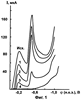 1 литр фиксажно-отбеливающего раствора фирмы «Kodak», содержащий [Ag+]=3,2 г/л, [Fe3+]=5,5 г/л, тиосульфата S2O3 2- (85 г/л) и сульфита SO3 2- (9,5 г/л) подвергался регенерации на лабораторной установке, состоящей из проточного электролизера со сменными электродами, перистальтического насоса, потенциостата ЕР-21 (Польша), соединенного с платой ЦАП/АЦП (фирмы Blue Chip Technology), встроенной в IBM PC. В процессе первой катодной обработки фиксажно-отбеливающий раствор с помощью перистальтического насоса непрерывно циркулировал со скоростью 0,4-0,6 л/мин через трехслойный объемно-пористый электрод из УВМ с разной электропроводностью [3]. Параметры электрода: видимая поверхность 40 см2, три слоя УВМ, расположенных в следующем порядке (от тыльного токоподвода): ВНГ-50-2 (0,39 См/см), НТМ-200 (0,071 См/см), ВВП-66-95 (0,0021 См/см). Пространство с противоэлектродом из платинированного титана заполнялось раствором (1М) сульфата натрия и отделялось катионообменной мембраной МК-40.