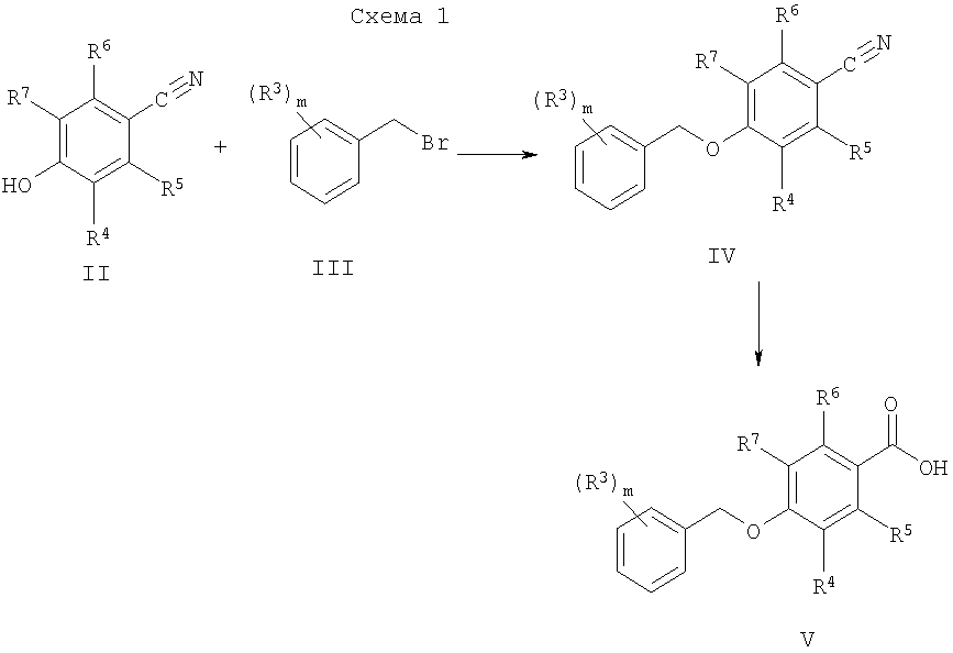 Настоящее изобретение относится к производным фторбензамидов общей формулы где R1 означает водород, (С1-С6)алкил или гидрокси(С1-С6)алкил; R2 означает (С1-С6)алкил, -CO-NR8R9, -(CH2)n-NR8R9, -(CH2)p-OR8 или -(CH2)n-CN; R3 выбирается из водорода, галогена, галоген(С1-С6)алкила, циангруппы, (С1-С6)алкоксигруппы или галоген(С1-С6)алкоксигруппы; R4, R5, R6 и R7 означают водород или фтор и, как минимум, один из R4, R5, R6 и R7 означает фтор; R8 и R9 независимо друг от друга означают водород или (С1-С6)алкил; m означает 1, 2 или 3; n означает 0, 1, 2 или 3 и p означает 1 или 2, а также к их фармацевтически приемлемым солям. Соединения общей формулы I являются селективными ингибиторами моноаминоксидазы В. Моноаминоксидаза (МАО, ЕС 1.4.3.4 /ЕС – Классификация Ферментов/) является флавинсодержащим ферментом, ответственным за окислительное дезаминирование эндогенных нейромедиаторов в виде моноаминов, как, например, допамин, серотонин, адреналин или норадреналин, и аминов в следовых количествах, например фенилэтиламин, а также ряда представляющих амины ксенобиотиков. Фермент существует в двух формах, МАО-А и МАО-В, кодируемых различными генами (A.W.Bach и др., Proc. Natl. Acad. Sci. USA, 1988, 85, 4934-4938) и отличающихся распределением в тканях, структурой и специфичностью к субстрату. МАО-А обладает более высоким сродством к серотонину, октопамину, адреналину и норадреналину, в то время как природными субстратами МАО-В являются фенилэтиламин и тирамин. Полагают, что допамин окисляется обеими изоформами. МАО-В широко распространена в некоторых органах, включая мозг (A.M.Cesura и A.Pletscher, Prog. Drug Research, 1992, 38, 171-297). Показано, что активность МАО-В в мозгу повышается с возрастом. Такое повышение приписали глиозу, связанному со старением (C.J.Fowler и др., J.Neural. Transm., 1980, 49, 1-20). Кроме того, активность МАО-В значительно выше в мозгу больных с болезнью Альцгеймера (Р.Dostert и др., Biochem. Pharmacol., 1989, 38, 555-561), и было найдено, что она высоко экспрессирована в астроцитах вокруг старческих бляшек (Saura и др., Neuroscience, 1994, 70, 755-774). В этом контексте, поскольку окислительное дезаминирование первичных моноаминов с помощью МАО приводит к аммиаку, альдегидам и перекиси водорода, веществам с установленной или потенциальной токсичностью, считают, что имеется основание для использования селективных ингибиторов МАО-В для лечения слабоумия и болезни Паркинсона. Ингибирование МАО-В вызывает уменьшение ферментативного инактивирования допамина и таким образом пролонгирование наличия нейромедиатора в допаминергических нейронах. Дегенеративные процессы, связанные с возрастом и болезнями Альцгеймера и Паркинсона, могут также быть отнесены к окислительной нагрузке вследствие повышенной активности МАО и последующего повышенного образования перекиси водорода с помощью МАО-В. Поэтому ингибиторы МАО-В могут действовать как путем снижения образования кислородных радикалов, так и путем повышения уровней моноаминов в мозгу. Учитывая причастность МАО-В к неврологическим нарушениям, упомянутым выше, имеется существенный интерес в получении сильнодействующих и селективных ингибиторов, которые бы обеспечивали регулирование ферментативной активности. Фармакология некоторых известных ингибиторов МАО-В обсуждается, например, D.Bentue-Ferrer и др. в CNS Drugs, 1996, 6, 217-236. В то время как главным ограничением необратимой и неселективной ингибирующей активности в отношении МАО является необходи