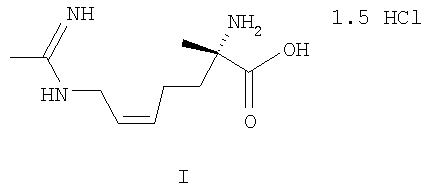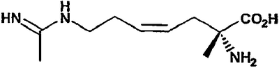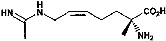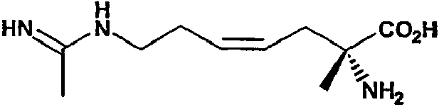 4. Фармацевтическая композиция, обладающая ингибирующей активностью в отношении синтазы окиси азота, содержащая эффективное количество 1,5 гидрохлорида (2S,5Z)-2-амино-7-(этанимидоиламино)-2-метилгепт-5-еноевой кислоты в сочетании с фармацевтически приемлемым носителем.
