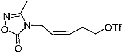 ЕХ-1В) К раствору ЕХ-1А (720 мг, 3,3 ммоль) в CH2Cl2 (25 мл) добавляют Et3N (525 мг, 5,3 ммоль) и метансульфонилхлорид (561 мг, 4,90 ммоль). Реакционную смесь перемешивают в течение 15 минут при температуре 0°С, затем при комнатной температуре в течение 16 ч. Добавляют еще CH2Cl2, раствор экстрагируют NaHCO3, насыщенным раствором соли, и сушат с получением 790 мг желтого масла. Масло растворяют в ДМФ (20 мл) и добавляют (513 мг, 3,7 ммоль). Полученный раствор перемешивают при температуре 50°С в течение 16 ч. Растворитель удаляют в вакууме и остаток разделяют между EtOAc и насыщенным раствором соли. Органический слой сушат (Na2SO4) и концентрируют с получением масла, которое очищают флэш-хроматографией на колонке с силикагелем, элюируя простым эфиром:гексаном (1:1) с получением 780 мг (79%) желаемого защищенного Z-аллильного циклического амидинового продукта в виде прозрачного масла, которое содержит только желаемый Z-изомер, по данным 1Н ЯМР.