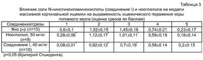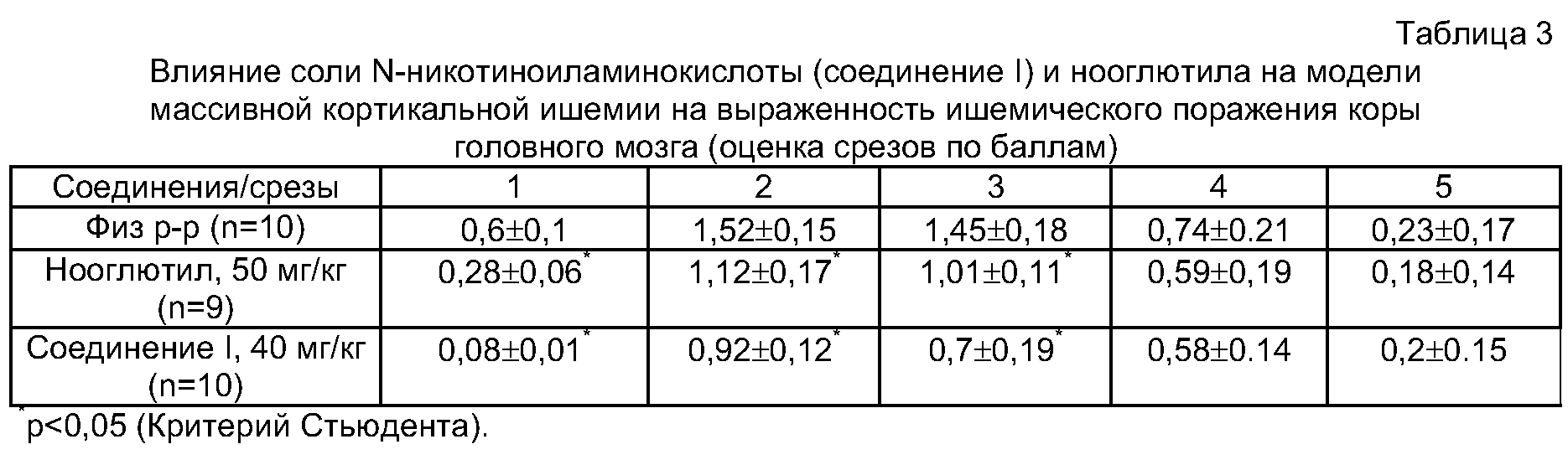 которые оказывают антидепрессивное, анксиолитическое, геропротекторное, нейропротекторное, противогипоксическое, противоинсультное, ноотропное действия. От известных препаратов, в том числе ближайшего аналога – основания N(5-гидроксиникотиноил)-L-глутаминовой кислоты (нооглютила), новые соединения отличаются наличием психотропных эффектов, а именно антидепрессивного и анксиолитического, а также нейропротекторного и геропротекторного действия, выражающегося в способности уменьшать очаги поражения при инсультах и улучшать неврологические дефициты, умственную и физическую работоспособность при старении. 11 табл.