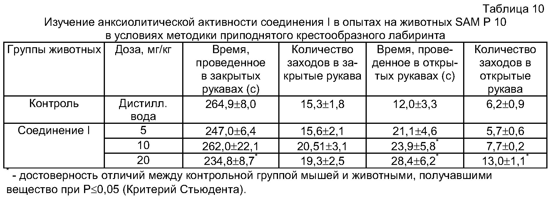 0,03). Полученные результаты свидетельствуют о наличии антидепрессивной активности у соединения I. Эффект соединения 1а сопоставим с действием амитриптилина.
