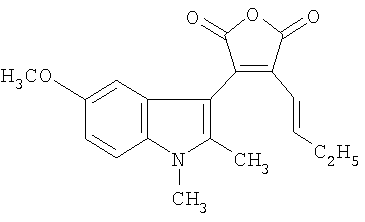 Изобретение относится к новым соединениям, а именно к 3-(5-алкокси-1,2-диметил-1Н-индол-3-ил)-4-[(1Е)-алк-1-енил]фуран-2,5-дионам общей формулы
