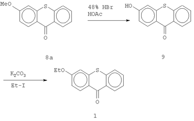 В случае, если для соединения обнаружено конкурентное поведение, для множества концентраций антагониста применяют регрессионный анализ Шильда (Schild). В результате описанных выше исследований было обнаружено, что соединения настоящего изобретения являются селективными антагонистами рецептора 5-НТ2B. Пример 6: Исследование связывания с клонированными рецепторами H1, H2 и Н3 человека Клетки COS-7 транзиторно трансфицируют экспрессионной плазмидой pCineohH1, pCineohH2, pCineohH3 и pCineohH4, кодирующей рецептор гистамина H1, Н2, Н3 или Н4 человека соответственно. Трансфицированные клетки собирают через 48 часов, гомогенизируют в ледяном 50 мМ Na2/калий фосфатном буфере (рН 7,4) и используют в исследованиях связывания с радиолигандом. Гомогенаты клеток (40-50 мкг белка) инкубируют в течение 30 минут при 25°С в 50 мМ Na2/калий фосфатном буфере (рН 7,4) в 400 мкл с различными концентрациями [3Н]-мепирамина, [3H]-тиотидина, [3H]-R- При использовании итерационного метода подбора кривой определяют концентрацию 1-метил-4-(3-этокси-9Н-тиоксантен-9-илиден)-пиперидина, дающую 50% ингибирование связывания (IC50). В результате описанных выше исследований было обнаружено, что каждое из соединений настоящего изобретения обладает низкой аффинностью к рецептору H1 человека. Пример 7: Функциональный анализ с рецептором гистамина H1 человека Для измерения образования [3H]-инозитол фосфата транзиторно трансфицированные клетки НЕК-293 сеют в 24-луночные планшеты и метят до установления равновесия мио-[2-3H]-инозитолом (3 мкКю/мл) в течение 24 часов в ростовой среде. Отбирают среду, а клетки промывают один раз 500 мкл буфера HBS (130 мМ NaCl, 900 мкМ NaH2PO4, 800 мкМ MgSO4, 5,4 мМ KCl, 1,8 мМ CaCl2, 25 мМ глюкозы в 20 мМ HEPES рН 7,4). Через две минуты после внесения 20 мМ Li+ клетки стимулируют добавлением агониста в буфере HBS. Инкубацию останавливают отбором культуральной среды и добавлением холодной 10 мМ муравьиной кислоты. [3Н]-инозитол фосфаты выделяют методом анионообменной хроматографии (см. Seuwen et al., 1988, EMBO J., 7, 161-168). Величину рКB вычисляют по формуле: рКB=log(A’/A-1)-log[В], где А’/А – это соотношение концентраций агониста (ЕС50 в присутствии / ЕС50 в отсутствии антагониста), а [В] – концентрация антагониста. По результатам исследований, описанных в вышеприведенном примере, было обнаружено, что соединения настоящего изобретения являются антагонистами более низкой эффективности к рецептору H1 человека. Результаты приведены в Таблице.