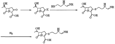 Так как тиенамицин является химически очень нестабильным, несмотря на превосходные фармакологические свойства, лекарственные препараты на его основе не были разработаны. Были предприняты многочисленные попытки по преодолению химической нестабильности тиенамицина с сохранением в то же время его фармакологического действия. Например, имипенем, который является новым производным тиенамицина, синтезированным в Merck Co., получен путем модификации аминогруппы тиенамицина в N-формимидоильную группу. Имипенем является новой концепцией антибиотика с улучшенной стабильностью. Имипенем широко использовался в качестве терапевтического средства до настоящего времени. Имипенем как карбапенемный антибиотик является первым доступным соединением среди бета-лактамных антибиотиков нового типа, имеющих систему карбапенемового кольца, и проявляет высокую стабильность даже в присутствии бета-лактамазы. Кроме того, имипенем демонстрирует чрезвычайно широкий спектр антибиотической активности против грамположительных и грамотрицательных аэробных и анаэробных видов. Имипенем получают только путем полного химического синтеза в отличие от обычных цефалоспориновых антибиотиков.