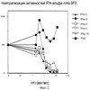 На Фиг.2 показано, каким образом мышиное mAb против IFN- человека (9F3) способно нейтрализовать спектр подтипов рекомбинантного IFN- , но не рекомбинантного IFN- . Указанные IFN оценивают по ингибированию в клетках А549 роста вируса энцефаломиокардита (EMC) в присутствии увеличивающихся концентраций mAb 9F3. Данные, представленные в виде процентов ингибирования активности вирусного роста, получены для указанного IFN в отсутствие mAb 9F3.