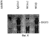 На Фиг.4 изображены результаты анализа изменений электрофоретической подвижности (EMSA), показывающие индукцию ISGF3/ISRE-комплекса с помощью IFN- и способность 9F3 mAb предотвращать образование данного комплекса. EMSA осуществляют в присутствии или в отсутствие либо IFN- 2 человека (обозначен в виде “ 2″), либо IFN- (обозначен в виде “ “) в концентрации 25 нг/мл для mAb 9F3 (обозначен в виде “9F3”) или мышиного контрольного антитела IgG (обозначен в виде “IgG”) в концентрации 10 г/мл.