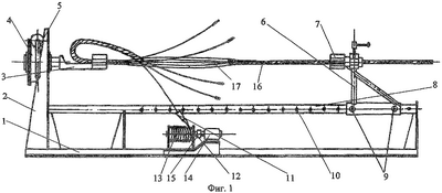 – распущенные пряди конца каната по принятой технологии изготовления огона пропускают между прядями в «фонаре». Затем самозажимным захватом 11 захватывают одну из пропущенных прядей, включают двигатель 14, который приводит во вращение барабан 13. Трос 12 начинает наматываться на барабан 13, увлекая за собой пропущенную прядь. При достижении пропущенной пряди нужного места в «фонаре» с помощью муфты 15 отсоединяют вал барабана от вала двигателя. Сматывают трос 12 с барабана 13, возвращая тем самым захват 11 в исходное положение. Повторяют эту операцию с другой прядью до тех пор, пока все пряди конца каната не будут протащены через «фонарь»;