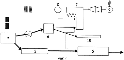 На фиг.2 более подробно иллюстрируется движение потоков веществ при осуществлении газификации.
