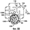 На фиг.8В изображено положение после смещения управляющего элемента 120 в направлении стрелки 232, после чего рабочий штырь 130В следящего механизма сталкивается с зубцом 82А кулачка, вызывая поворот барабанного кулачка 80 в направлении против часовой стрелки, по стрелке 236.