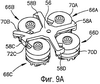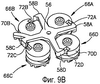 Для дальнейшего понимания изобретения рассмотрим фиг.9А-9С, изображающие стопорный элемент 56 и замковые узлы 66 на изометрическом виде снизу, на которых для ясности отдельные замковые узлы идентифицированы ссылочными позициями 66А, 66В, 66С и 66D с их соответствующими элементами, обозначенными теми же ссылочными позициями.