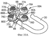 Элемент 88 возврата содержит четыре плеча, каждое выполнено на своем конце с плоской зацепляющей кулачок поверхностью 88А-88D, каждая соответствует кулачку 76A-76D возврата соответственно. Каждый из кулачков 76A-76D возврата имеет каплеобразную форму по существу с плоским участком 77A-77D основания соответственно, посредством чего получается так называемое “нулевое положение” или “положение возврата”, когда все кулачки возврата ориентируются так, что их плоские поверхности 77A-77D соответственно упираются в соответствующие плоские поверхности 88A-88D соответственно элемента 88 возврата, как в положении на фиг.10С.