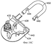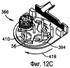 Также отметим, что разделительный элемент 394 образован четырьмя наклонными поверхности 410 с подходящими углублениями 412 для приема расположенных в плоскости опорных штырей 416. Соответственно, следует оценить, что разделительный элемент 394 способен поворачиваться внутри корпуса ограниченным образом только в направлении по часовой стрелке.