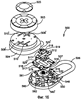 Как лучше всего показано на фиг.13А-13С, дисковый элемент 380 содержит коаксиальный направленный вниз выступ 413, высота которого приблизительно соответствует толщине разделительного элемента 394, а также толщине стопорного элемента 56, чтобы таким образом способствовать легкому зацеплению и расцеплению во время смещения стопорного элемента 56 и разделительного элемента 394.