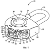 Хотя вышеописанное раскрытие относится к смещению стопорного элемента 56 в зацепление с дисковыми элементами 70, следует оценить, что это является просто примером и упомянутое действие смещения можно опустить. Однако упомянутое смещение помогает получить незапертое положение, так что стопорный элемент нельзя будет легко и умышленно переместить, например, с помощью тряски и т.д.