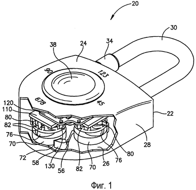 фиг.1 представляет частично вырезанное изометрическое изображение висячего замка в соответствии с вариантом осуществления настоящего изобретения;
