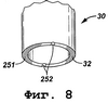 В варианте на фиг.8 нижняя поверхность 32 нижнего конца цангового патрона 30 сконструирована неоднородной, чтобы предотвратить образование уплотнения шаром, который расположен ниже цангового патрона 30 (и не растворился или не разрушился достаточно для прохождения через него), блокирующего связь по текучей среде. Таким образом, поверхность 32 может иметь одну или более неоднородностей, типа выемки 252, которые позволяют поверхности 32 не становиться эффективным седлом клапана. В поверхность 32 можно вводить другие типы неоднородностей, такие как выпуклые участки, в общем шероховатые поверхности и т.д., в зависимости от конкретного варианта осуществления изобретения.