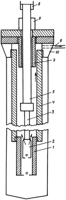 Во время эксплуатации скважины полость труб 4 разобщается от атмосферы сопряжением поршня 5 и цилиндра 7, а сальниковое устройство 8 служит в качестве резервного.