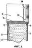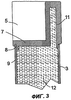 На фиг.2 изображен верхний замыкающий элемент 5 и его окружение в вертикальном разрезе в плоскости, обозначенной на фиг.1 II-II. На фиг.3 изображен аналогичный разрез в плоскости III-III. Верхний замыкающий элемент содержит горизонтальную пластину 7, снабженную с нижней стороны пазами 8, в которые вставляются расположенные на одинаковом уровне верхние кромки наружной стенки 3 и внутренней стенки 9.